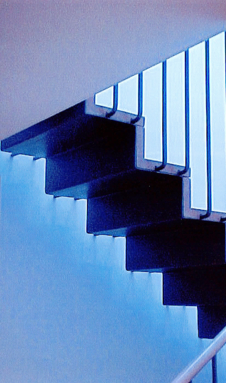L'edificació es planteja esgraonada, en sentit descendent vers el jardí, formant terrasses en els nivells de sota-coberta i planta baixa. La mitgera sud es planteja lliure d'elements divisoris, permetent les visuals de façana a façana, configurant els espais principals a l'entorn d'un nucli de serveis.